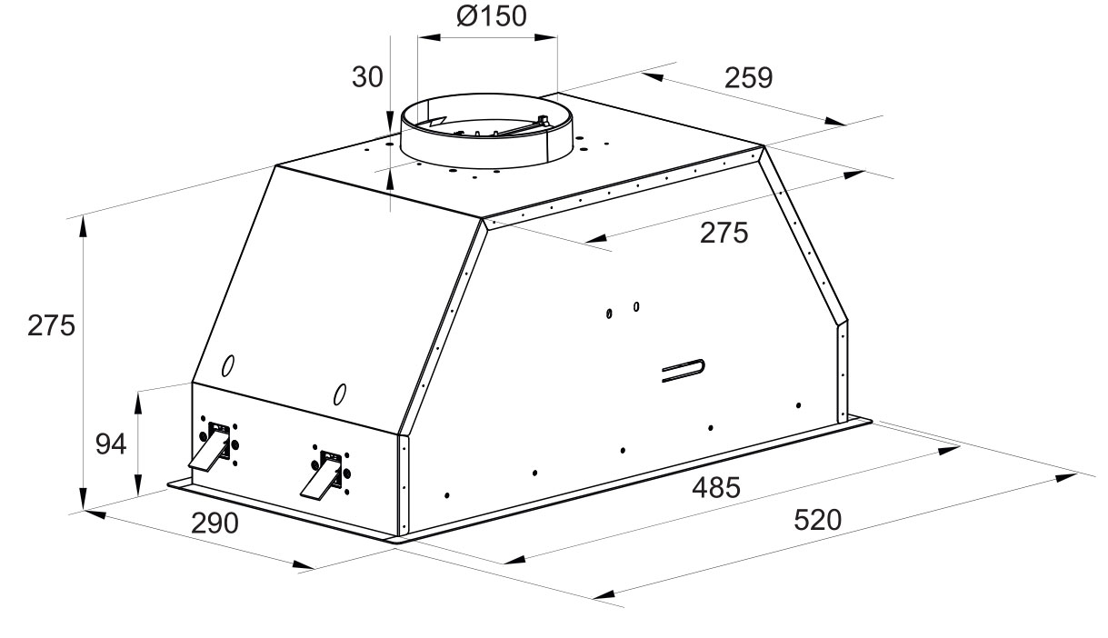 Схема встраивания для кухонной вытяжки Kaiser EA 548