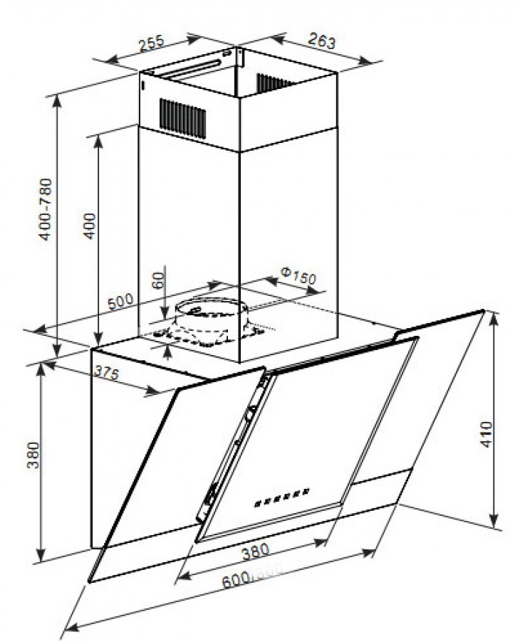 Схема встраивания для кухонной вытяжки Kaiser AT 6438F Eco