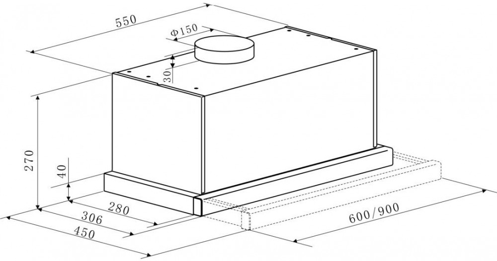 Схема встраивания для кухонной вытяжки Kaiser EA 644 W Eco