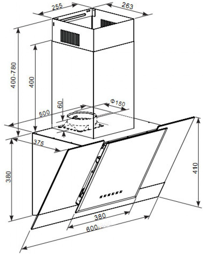 Схема встраивания для кухонной вытяжки Kaiser AT 6438 FW