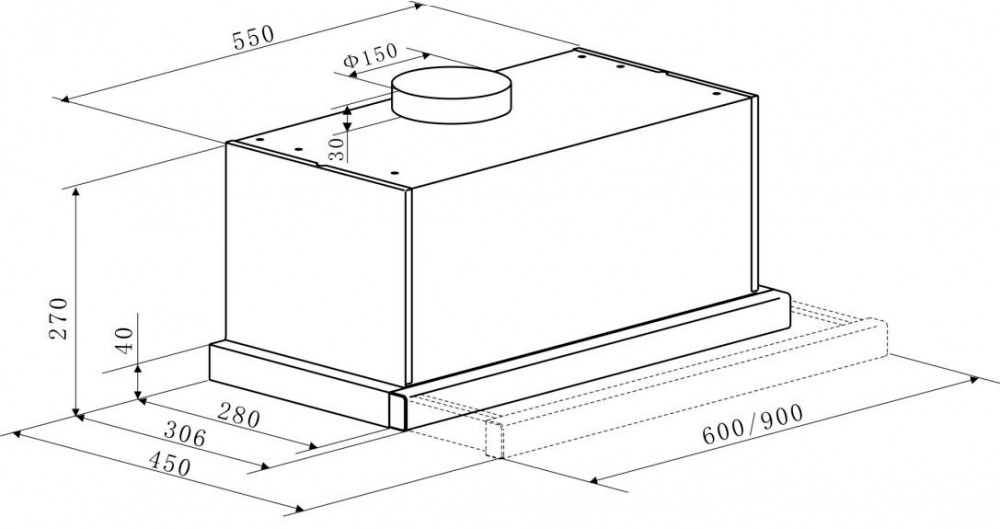 Схема встраивания для кухонной вытяжки Kaiser EA 644 ElfEm Eco