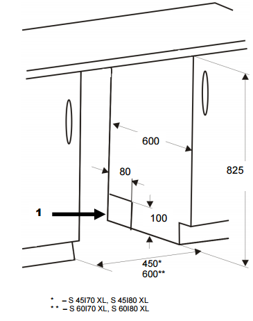 Схема встраивания для посудомоечной машины Kaiser S 45 I 60 XL