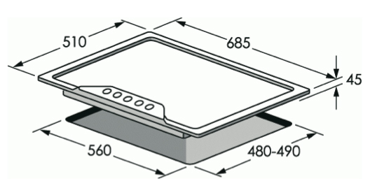 Схема встраивания для варочной панели Kaiser KG 50.700 GZRg