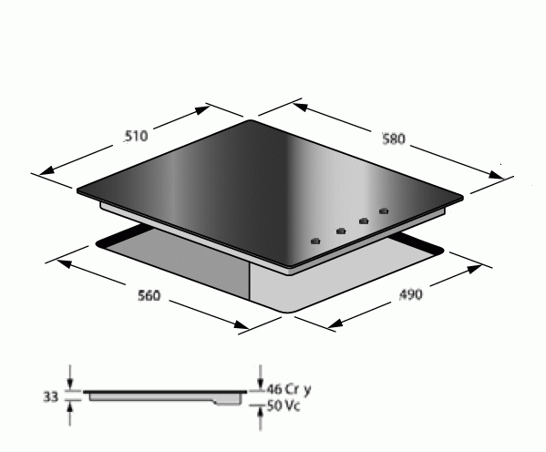 Схема встраивания для варочной панели Kaiser KCG 40.600 GZ