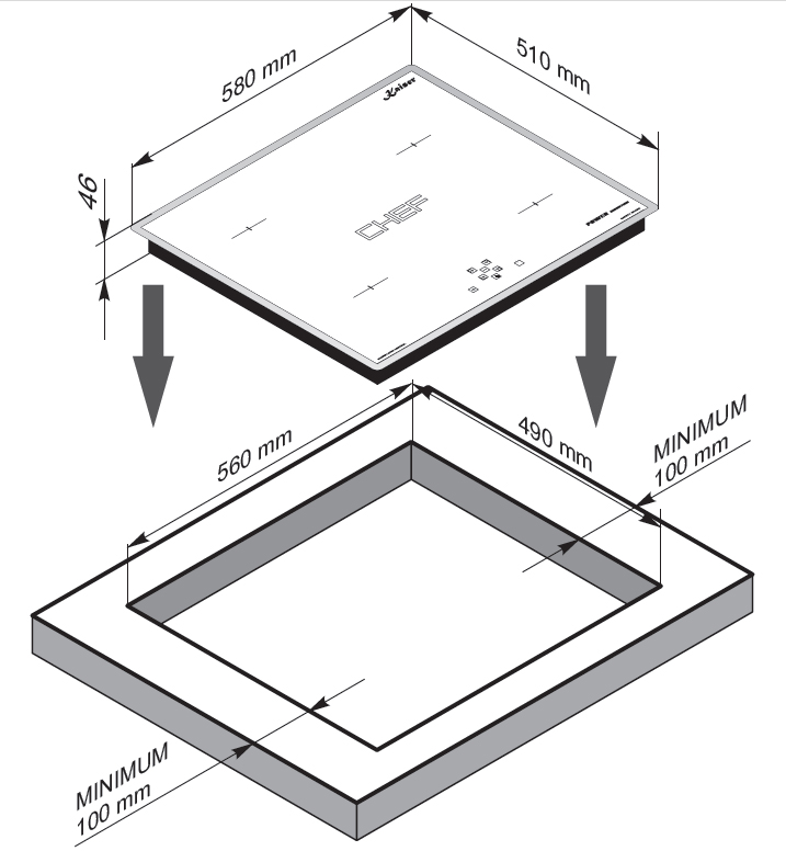 Схема встраивания для варочной панели Kaiser KCT 6100 FI W