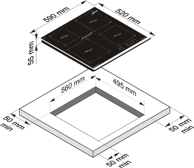 Схема встраивания для варочной панели Kaiser KCT 6512 F Ara