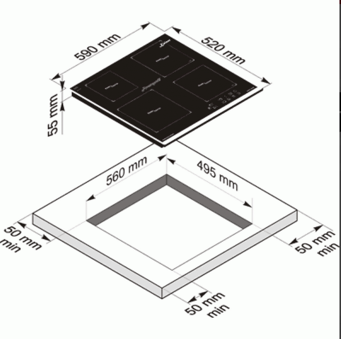Схема встраивания для варочной панели Kaiser KCT 65 FIN Avant.