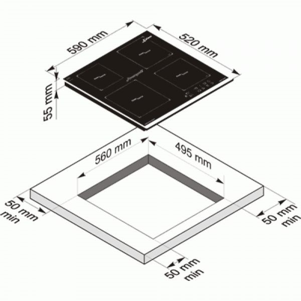 Схема встраивания для варочной панели Kaiser KCT 6515 F Ara