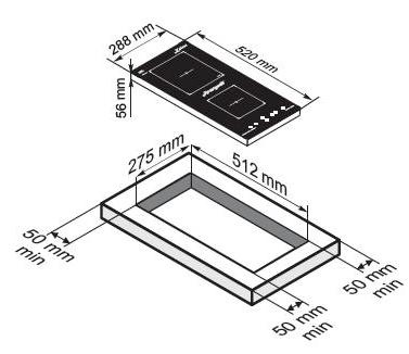 Схема встраивания для варочной панели Kaiser KCT 3422 FW Avant