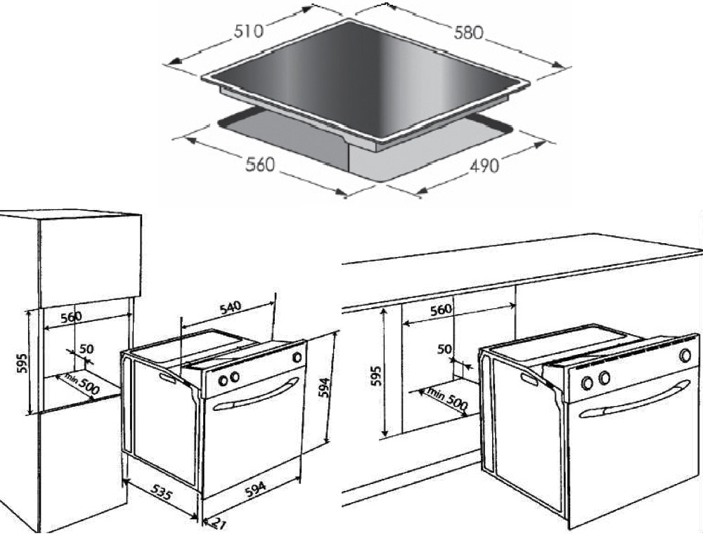 Схема встраивания для духового шкафа Kaiser EHC 69602 Set Touch Control