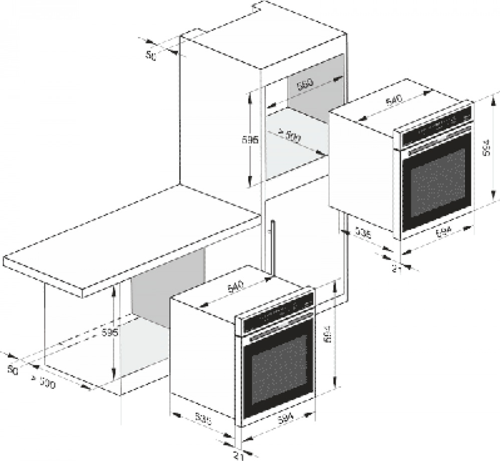 Схема встраивания для духового шкафа Kaiser EH 6424 GrBe Eco