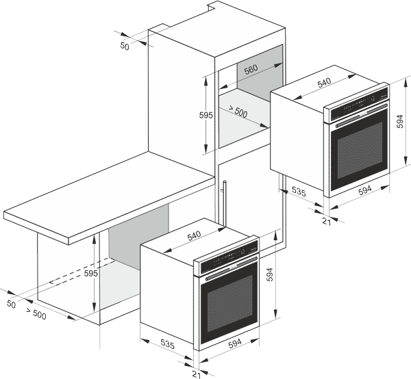 Схема встраивания для духового шкафа Kaiser EH 6326 W