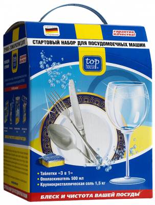 Стартовый набор для посудомоечных машин TOP HOUSE изготовлен в Германии по современной технологии и с учетом рекомендаций ведущих производителей посудомоечных машин.