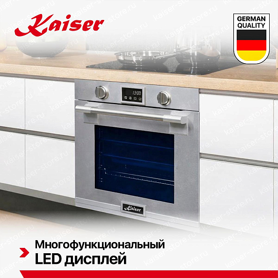Духовой шкаф Kaiser EH 6339 — это современное и функциональное решение для кухни, которое сочетает в себе немецкое качество и элегантность дизайна. Отделка из нержавеющей стали и стекла придает этому устройству стильный и современный вид, который будет выглядеть великолепно на любой кухне.