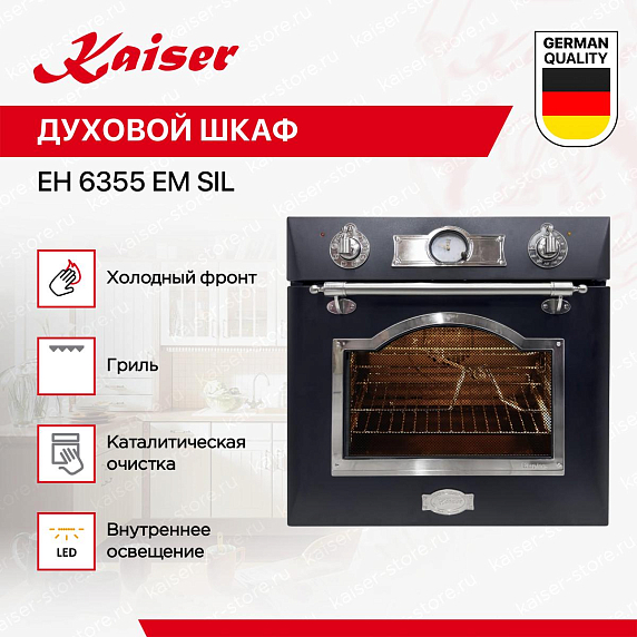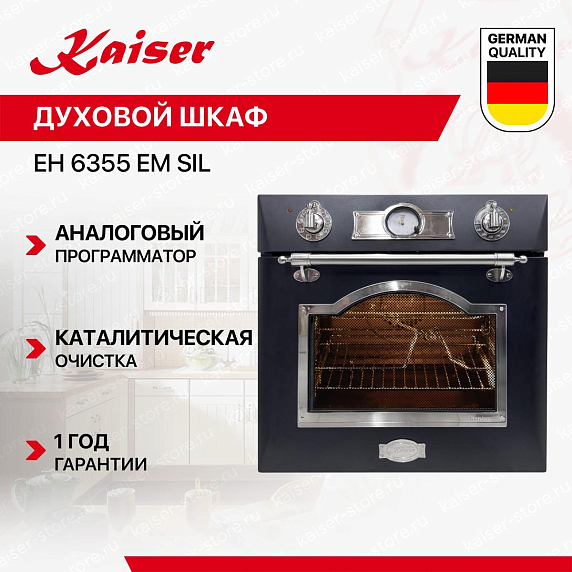 Духовой шкаф Kaiser EH 6355 EM SIL выделяется на фоне аналогичных моделей благодаря своей высокой энергоэффективности и практичному подходу к кухонным задачам. Его стильный внешний вид с элегантной стеклянной дверцей и серебристыми акцентами делает его привлекательным элементом любой кухни.