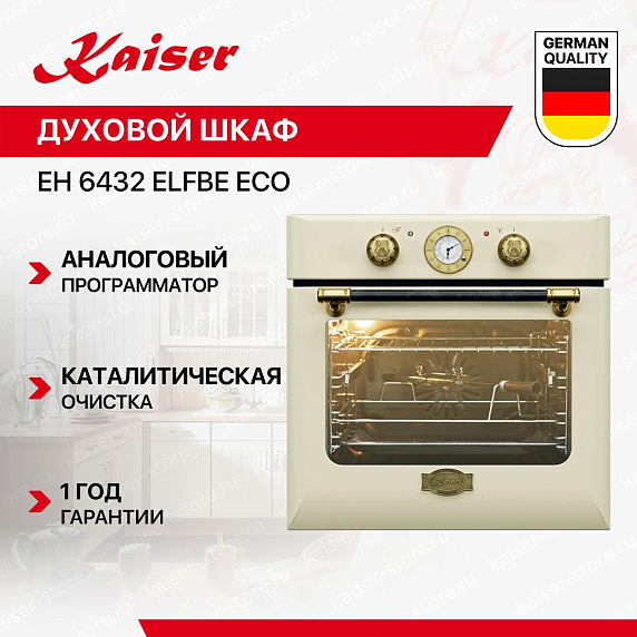 Электрический духовой шкаф Kaiser EH 6432 ElfBE Eco является высококачественной бытовой техникой, произведенной в Германии. Он сочетает в себе элегантность и функциональность, обеспечивая идеальные условия для приготовления любимых блюд. Шкаф выполнен в стильном цвете слоновой кости, что делает его идеальным дополнением к любому интерьеру кухни. Фурнитура античного золота добавляет ему изысканности и шарма. Фронтальная панель из эмали обеспечивает долговечность и устойчивость к высоким температурам.
