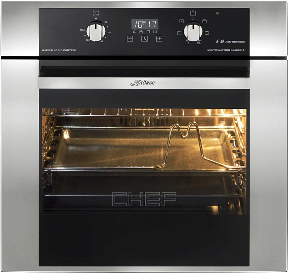 Независимый электрический духовой шкаф Kaiser EH 6321 оснащен пятью функциями нагрева, размораживанием и электронным управлением Logic control. Дизайн дополняют элегантные эргономичные регуляторы и ручка из нержавеющей стали. Тройное стекло дверцы надежно удерживает тепло внутри, что повышает эффективность нагрева.