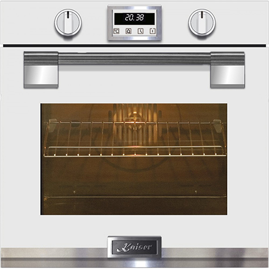 Электрический духовой шкаф Kaiser EH 6338 W представлен в универсальном белом цвете. Модель относится к коллекции Avangarde Pro и отлично впишется в интерьер стиля хай-тек или модерн. Класс энергопотребления A — положительно скажется на семейном бюджете. Внутреннего освещения достаточно, чтобы контролировать процесс готовки не открывая дверцу. Электронное управление нового поколения Intelligent System осуществляется с помощью поворотных и сенсорных переключателей. Вся необходимая информация выводится на многофункциональный LED-дисплей. Таймер не позволит передержать блюда в печи, вовремя известив о завершении приготовления. Полезный объем составляет 79 л, этого достаточно как для запекания крупной дичи, так и для приготовления скромного ужина. Удалить сложные загрязнения поможет пиролиз и эмаль легкой очистки, которой покрыта внутренняя камера. Дверца относится к съемному типу и оборудована четырехслойным остеклением, которое препятствует потерям тепла из духовки и нагреву в процессе работы. Кроме того, стёкла имеют панорамный вид и на внешнем нанесена таблица с рецептами. В стандартном наборе идут: решетка, телескопические направляющие, два противня разной глубины и термозонд. Гарантия от производителя составляет один год.