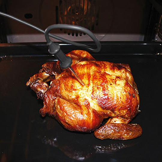 Прибор, состоящий из стального щупа и градусника, позволяющий максимально точно определить температуру внутри готовящегося мяса, рыбы, сытной и сладкой выпечки, а значит и определить степень их готовности. Это позволяет избежать как пересушивания, так и оставшихся сырыми участков.