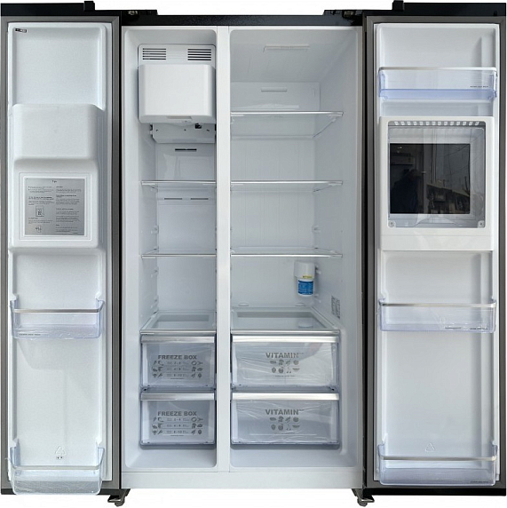 Холодильник Kaiser KS-90500 RS — это превосходный выбор для тех, кто ценит качество и стиль. Эта модель произведена в Германии и представляет собой двухкамерный холодильник типа Side-by-side, который отлично впишется в любой интерьер благодаря своему стильному черному цвету и фурнитуре из нержавеющей стали. Фронт устройства выполнен из окрашенной стали, а ручки — накладные, что придает модели особый шик. Основные габариты холодильника составляют 178 см в высоту, 91.1 см в ширину и 70.6 см в глубину. Общий объем устройства составляет 556 литров, что позволяет вместить большое количество продуктов. Внутреннее освещение выполнено на светодиодах, что обеспечивает яркое и равномерное освещение. Управление холодильником осуществляется при помощи электронной системы Intelligent system. На дисплее отображается всю необходимую информацию о состоянии устройства. Кроме того, модель оснащена звуковым сигналом индикации открытой дверцы и функцией «„Отпуск“», что позволяет сэкономить энергию во время вашего отсутствия. Объем холодильной камеры составляет 385 литров.