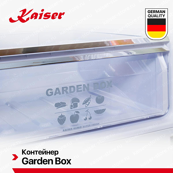 Система NoFrost в морозильном отделении холодильников Kaiser предотвращает образование инея и наледи за счёт циркуляции сухого холодного воздуха и автоматической оттайки испарителя. Благодаря этому продукты не смерзаются, а внутреннее пространство остаётся всегда чистым — ручная разморозка не требуется. Система обеспечивает стабильную температуру, быструю заморозку и равномерное распределение холода по всем ящикам.