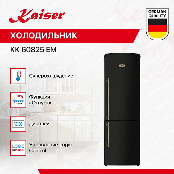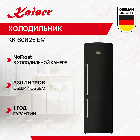 Холодильник Kaiser KK 60825 Em — это уникальное сочетание стиля, функциональности и надежности. Эта модель, выпущенная в Германии, выделяется своим дизайном в стиле Empire, который подчеркивается черным цветом корпуса и бронзовой фурнитурой. Ручки накладного типа добавляют особый шарм и удобство в использовании.