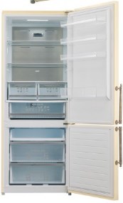 Современный холодильник Kaiser KK 70575 ElfEm в цвете «слоновой кости» дополняет коллекцию Empire. Интеллектуальная система управления позволяет настраивать температуру в холодильном и морозильном отделениях, активировать специальные функции. Система фильтрации Cloud Fresh удаляет неприятные запахи и защищает рабочую камеру от бактерий.