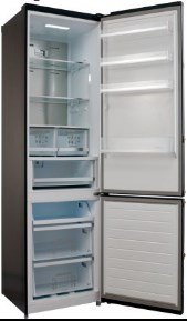 Холодильная камера функционирует на основе системы No Frost, т.е. внутри не образуется инея, обледенения и снега, поэтому холодильник Кайзер KK 70575 Em не нуждается в частой разморозке с участием пользователя. Имеется функция супербыстрого охлаждения, что необходимо, если нужно охладить продукты в больших количествах. Предусмотрено две зоны супер свежести, они изготовлены в виде двух ящиков, в них поддерживается нулевая температура, полки регулируются по высоте, одна из них — составная, специальный контейнер Garden Box для хранения овощей, фруктов и зелени, благодаря обдуву и контролю влаги они длительное время сохраняют первоначальный вид. Полезный объем холодильного отделения — 310 литров.