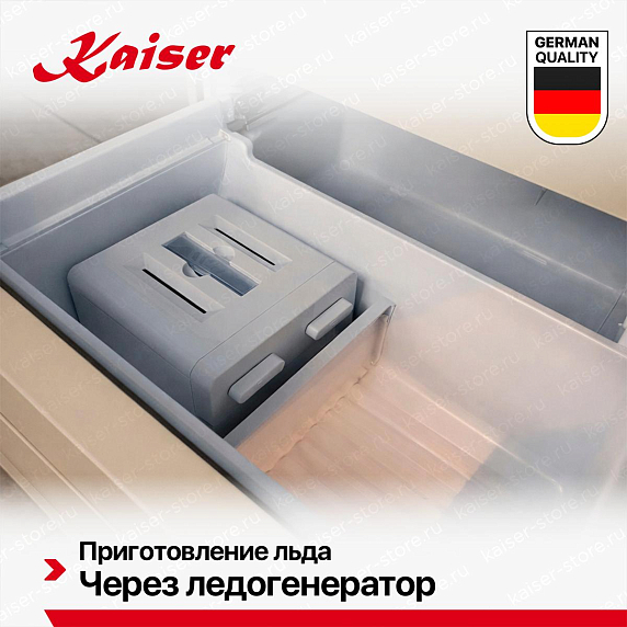 Система NoFrost в морозильном отделении холодильников Kaiser предотвращает образование инея и наледи за счёт циркуляции сухого холодного воздуха и автоматической оттайки испарителя. Благодаря этому продукты не смерзаются, а внутреннее пространство остаётся всегда чистым — ручная разморозка не требуется. Система обеспечивает стабильную температуру, быструю заморозку и равномерное распределение холода по всем ящикам.