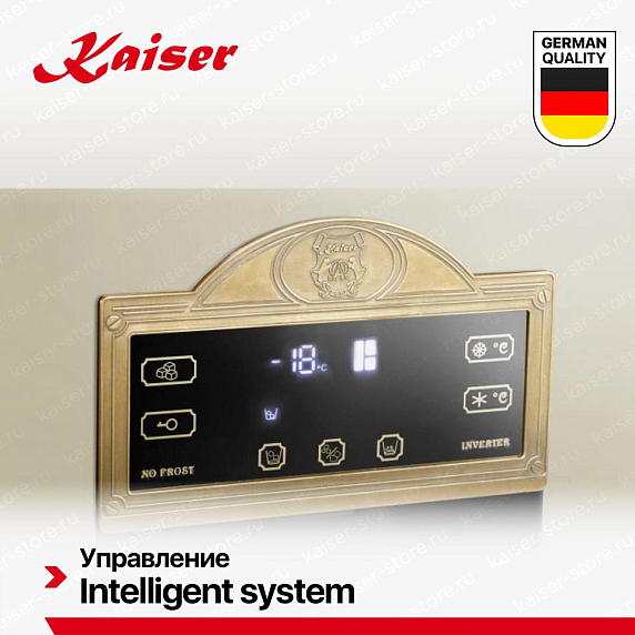 Система NoFrost в морозильном отделении холодильников Kaiser предотвращает образование инея и наледи за счёт циркуляции сухого холодного воздуха и автоматической оттайки испарителя. Благодаря этому продукты не смерзаются, а внутреннее пространство остаётся всегда чистым — ручная разморозка не требуется. Система обеспечивает стабильную температуру, быструю заморозку и равномерное распределение холода по всем ящикам.