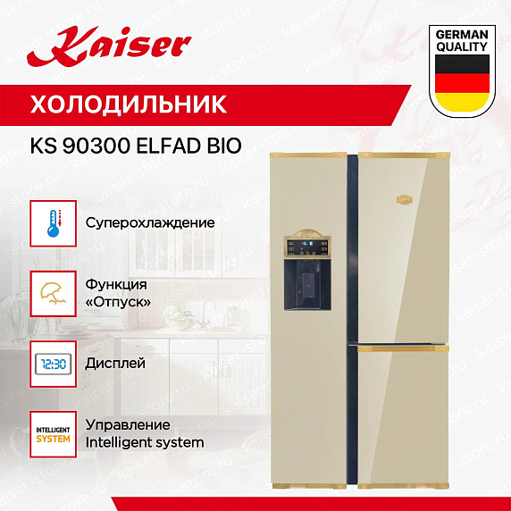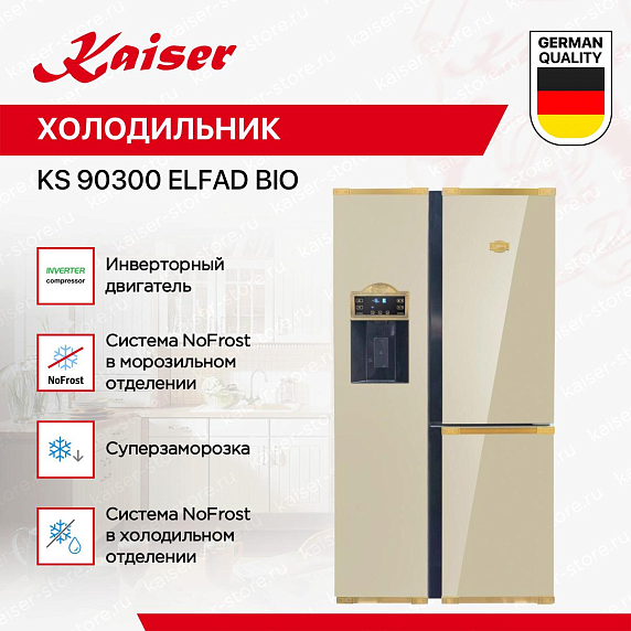 Холодильник Kaiser KS 90300 ElfAD Bio — это воплощение современного дизайна и передовых технологий. Этот отдельностоящий холодильник типа Side-by-side имеет две камеры, что позволяет удобно организовать хранение продуктов.