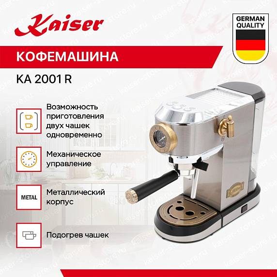 Кофемашина Kaiser KA 2001 R — это воплощение стиля ретро и функциональности в одном устройстве, идеально подходящем для истинных ценителей кофе. Ее корпус выполнен из нержавеющей стали, что придает прибору не только изысканный внешний вид, но и высокую прочность, обеспечивая долговечность и надежность в эксплуатации. Механическое управление позволяет легко и интуитивно настраивать параметры приготовления напитков, что делает процесс создания кофе максимально комфортным и быстрым.
