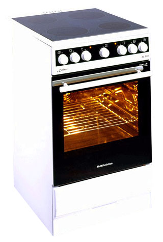Плита электрическая с четырьмя стеклокерамическими конфорками. Оснащена световыми индикаторами остаточного нагрева, электрической духовкой Multi 5 с термоциркуляцией, механическим таймером и функцией размораживания, а также посудным легко-выдвигающимся ящиком.