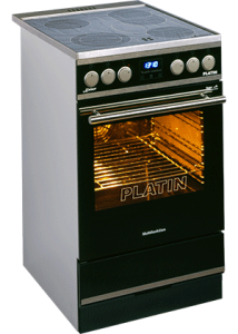 Электрическая плита с четырьмя стеклокерамическими конфорками и электронным программатором работы. Оснащена нагревательными электродами сверхбыстрого нагрева Hi-Light, электрической духовкой Multi 9 с термоциркуляцией, инфракрасным грилем и электрическим вращающимся вертелом, а также посудным легко-выдвигающимся ящиком со стеклянным фронтом.