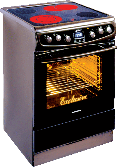 Плита электрическая с четырьмя стеклокерамическими конфорками и электронным программирующим устройством Touch Control. Оснащена нагревательными электродами сверхбыстрого нагрева Hi-Light, электрической духовкой Multi 9 с термоциркуляцией, инфракрасным грилем и электрическим вращающимся вертелом.