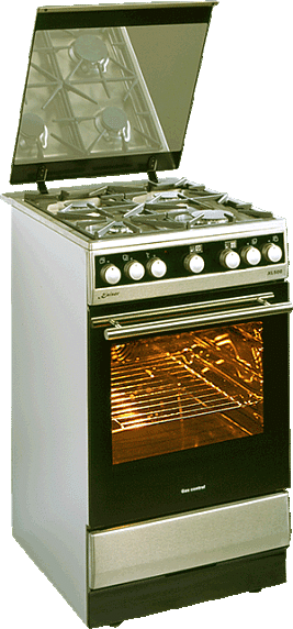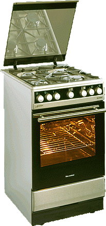 Плита газовая с четырьмя конфорками, цвета нержавеющая сталь. Оснащена поворотными ручками с электроподжигом, газовой духовкой с инфракрасным грилем, функцией предохранения от утечки газа и механическим терморегулятором, а также посудным легко-выдвигающимся ящиком.
