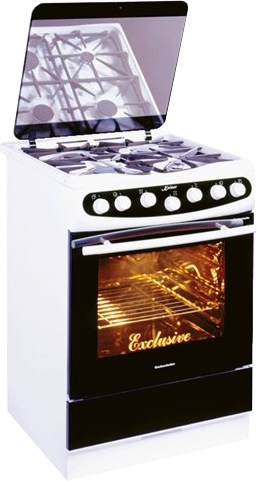 Газовая плита белого цвета с четырьмя конфорками. Оснащена поворотными ручками с электроподжигом, газовой духовкой с инфракрасным грилем и электрическим вращающимся вертелом. Посудный легко-выдвигающийся ящик обеспечит дополнительное удобство в использовании.