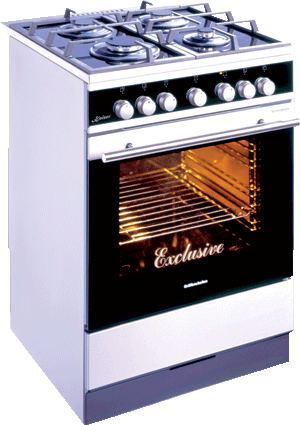 Плита газовая с четырьмя конфорками, цвета нержавеющая сталь. Оснащена поворотными ручками с электроподжигом, газовой духовкой с инфракрасным грилем и посудным легко-выдвигающимся ящиком.