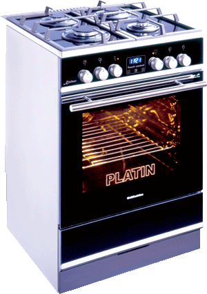 Плита газо-электрическая с четырьмя газовыми конфорками и электронным программирующим устройством Touch Control. Оснащена электрической духовкой Multi 5 с термоциркуляцией и функцией размораживания.