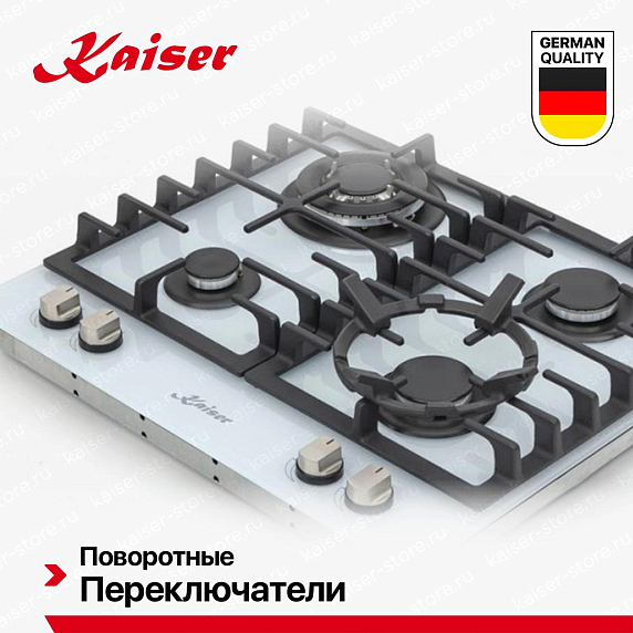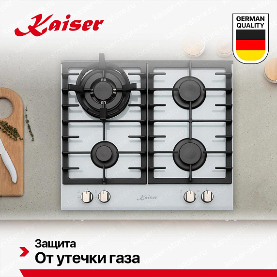 Газовые варочные панели Kaiser — это надёжность, точный контроль пламени и классическая технология готовки. Изготовлены из закалённого стекла или нержавеющей стали, оснащены чугунными решётками, автоматическим электроподжигом и системой газ-контроль (автоматическое отключение при затухании пламени). Конфорки разной мощности — от мощной для быстрого кипячения до экономичной для томления — обеспечивают гибкость в приготовлении. Подходят для любой посуды, работают даже при отключении электричества.
