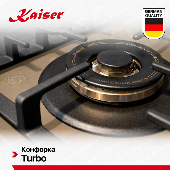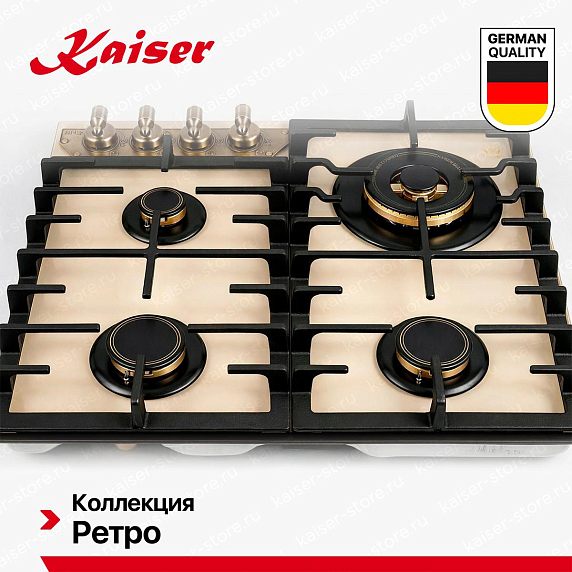 Ключевые преимущества:Газовые варочные панели Kaiser — это надёжность, точный контроль пламени и классическая технология готовки. Изготовлены из закалённого стекла или нержавеющей стали, оснащены чугунными решётками, автоматическим электроподжигом и системой газ-контроль (автоматическое отключение при затухании пламени). Конфорки разной мощности — от мощной для быстрого кипячения до экономичной для томления — обеспечивают гибкость в приготовлении. Подходят для любой посуды, работают даже при отключении электричества.