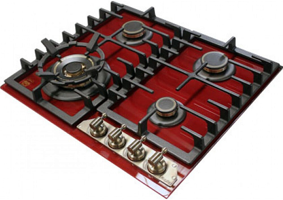 Газовая варочная поверхность KAISER KCG 6335 Rotem Turbo стильный дизайн. Модель линейки «Газ на стекле» органично дополнит современный кухонный интерьер. Панель изготовлена из закаленного стекла красного цвета с черными чугунными решетками. Она имеет высокий уровень безопасности применения и предназначена для долгого срока службы.