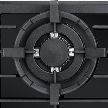 Одна из 4 конфорок имеет конструкцию «Тройная корона» и оборудована подставкой под вок-сковородки. Эта экспресс-конфорка она имеет три кольца пламени и предназначена для наиболее интенсивного нагревания. В этой конфорке три ряда пламени, что обеспечивает ее высокую мощность.