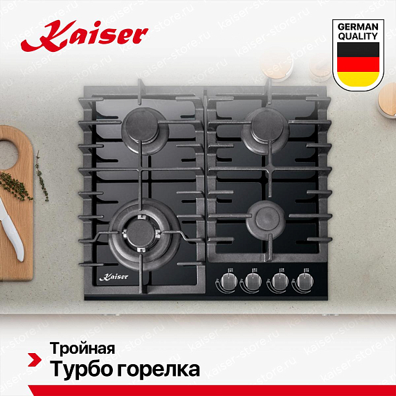Ключевые преимущества:Газовые варочные панели Kaiser — это надёжность, точный контроль пламени и классическая технология готовки. Изготовлены из закалённого стекла или нержавеющей стали, оснащены чугунными решётками, автоматическим электроподжигом и системой газ-контроль (автоматическое отключение при затухании пламени). Конфорки разной мощности — от мощной для быстрого кипячения до экономичной для томления — обеспечивают гибкость в приготовлении. Подходят для любой посуды, работают даже при отключении электричества.