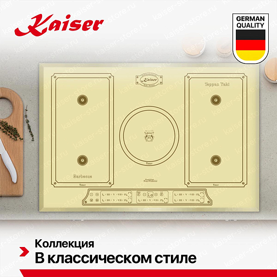 Индукционные варочные панели Kaiser обеспечивают быстрый, точный и безопасный нагрев — тепло генерируется непосредственно в посуде, а поверхность остаётся относительно прохладной. Многие модели оснащены сенсорным управлением, функциями «Быстрый нагрев», «Поддержание тепла», таймером и блокировкой от детей. Работают только с посудой из ферромагнитных материалов, но при этом экономят до 30% энергии. Благодаря закалённому стеклу легко чистятся и гармонично вписываются в современный интерьер.