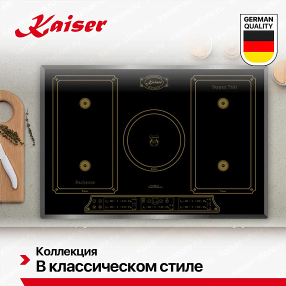 Индукционные варочные панели Kaiser обеспечивают быстрый, точный и безопасный нагрев — тепло генерируется непосредственно в посуде, а поверхность остаётся относительно прохладной. Многие модели оснащены сенсорным управлением, функциями «Быстрый нагрев», «Поддержание тепла», таймером и блокировкой от детей. Работают только с посудой из ферромагнитных материалов, но при этом экономят до 30% энергии. Благодаря закалённому стеклу легко чистятся и гармонично вписываются в современный интерьер.
