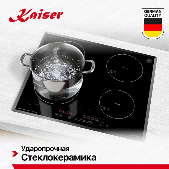 Индукционные варочные панели Kaiser обеспечивают быстрый, точный и безопасный нагрев — тепло генерируется непосредственно в посуде, а поверхность остаётся относительно прохладной. Многие модели оснащены сенсорным управлением, функциями «Быстрый нагрев», «Поддержание тепла», таймером и блокировкой от детей. Работают только с посудой из ферромагнитных материалов, но при этом экономят до 30% энергии. Благодаря закалённому стеклу легко чистятся и гармонично вписываются в современный интерьер.