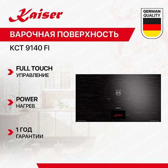 Варочная панель Kaiser KCT 9140 FI представляет собой современное решение для вашей кухни, сочетающее в себе стильный дизайн и передовые технологии.