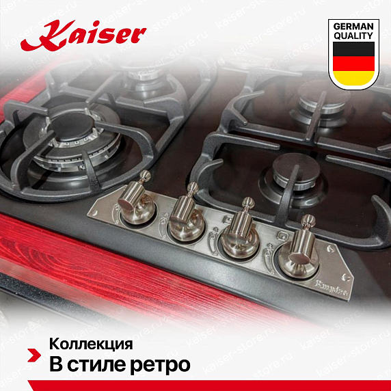 Газовые варочные панели Kaiser — это надёжность, точный контроль пламени и классическая технология готовки. Изготовлены из закалённого стекла или нержавеющей стали, оснащены чугунными решётками, автоматическим электроподжигом и системой газ-контроль (автоматическое отключение при затухании пламени). Конфорки разной мощности — от мощной для быстрого кипячения до экономичной для томления — обеспечивают гибкость в приготовлении. Подходят для любой посуды, работают даже при отключении электричества.