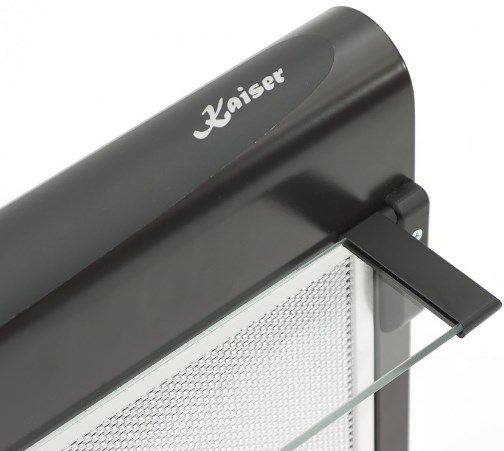 Кухонная вытяжка Kaiser A 501 MB — модель коричневого цвета, имеет ширину 50 см. Работает в режимах отвода и рециркуляции. Переключение скоростей и включение подсветки производятся нажатием кнопок. Яркая галогенная лампа хорошо освещает варочную поверхность.